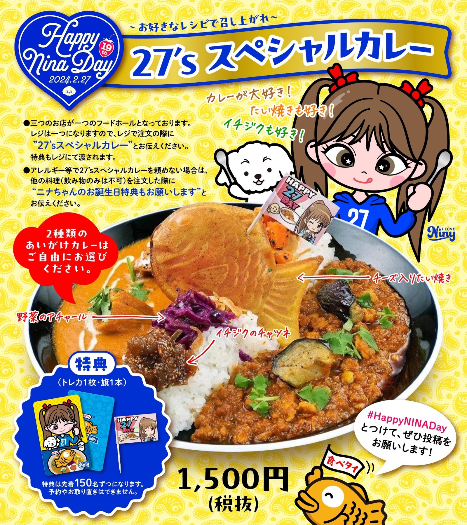 ニナちゃんの好物だらけの27's スペシャルカレーを是非!